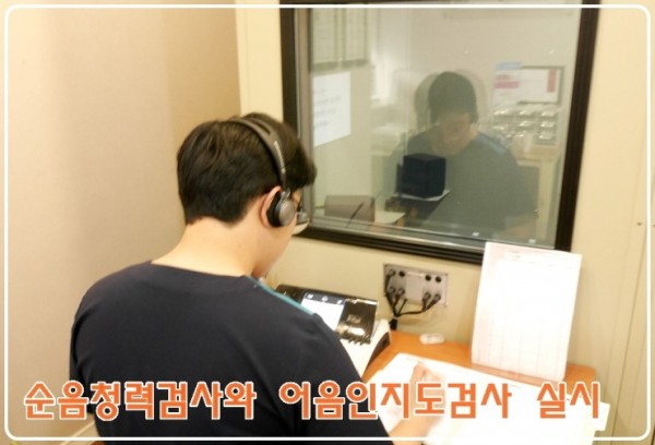 기초상담 후에는 순음청력검사 및 어음인지도 검사를 실시하게 되지요.